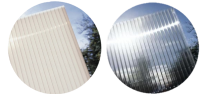 - en plaque de polycarbonate de 16mm, constituée de multiple alvéoles, opale ou translucide, traitée anti-UV sur leur face extérieur ;